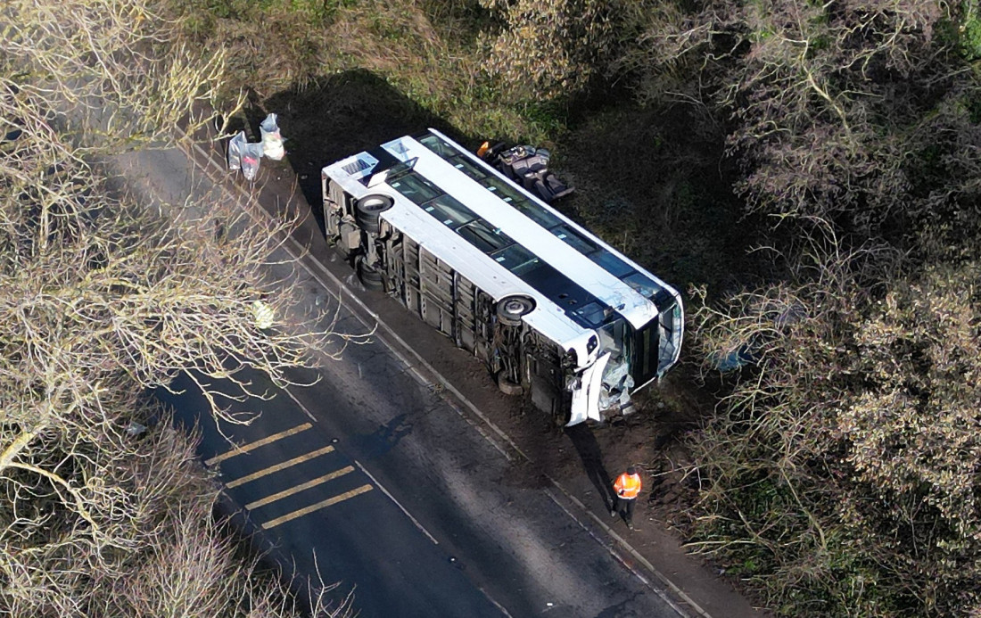 Putnici su naveli da je autobus, u kome su se nalazile 43 osobe, oko 2.50 časova izgubio kontrolu nad kočnicom, udario u jarugu i prevrnuo se, navode vatrogasci.