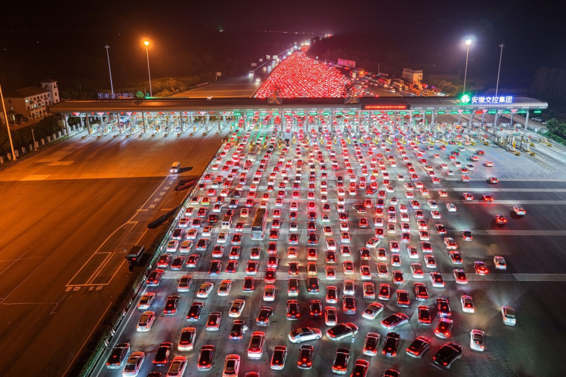 Najveća naplatna stanica u kineskoj provinciji Anhui zabeležila je ogroman zastoj u saobraćaju kada se milion putnika u ponedeljak, 6. oktobra, vraćalo kućama nakon završetka osmodnevnog praznika povodom Dana nacionalnog dana i festivala Sredine jeseni. Snimci vozila u koloni na naplatnoj stanici Vužangu postali su viralni na društvenim mrežama.