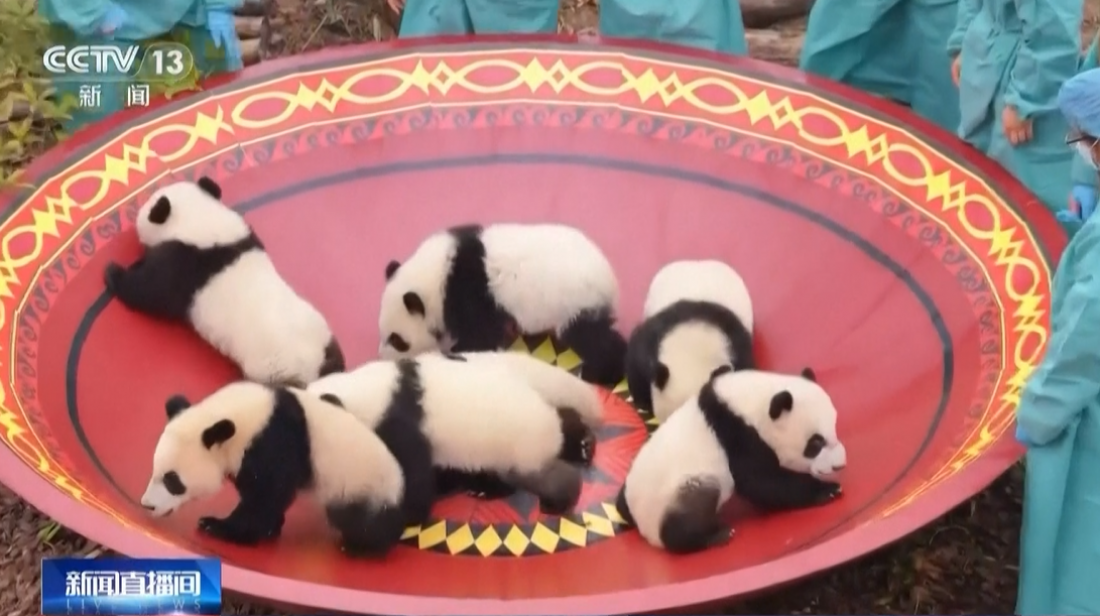 Dvadeset devet mladunaca pande iz jugozapadne kineske provincije Sečuan imalo je u sredu svoj televizijski debi u čast proslave Lunarne nove godine, prenela je državna televizija CCTV.