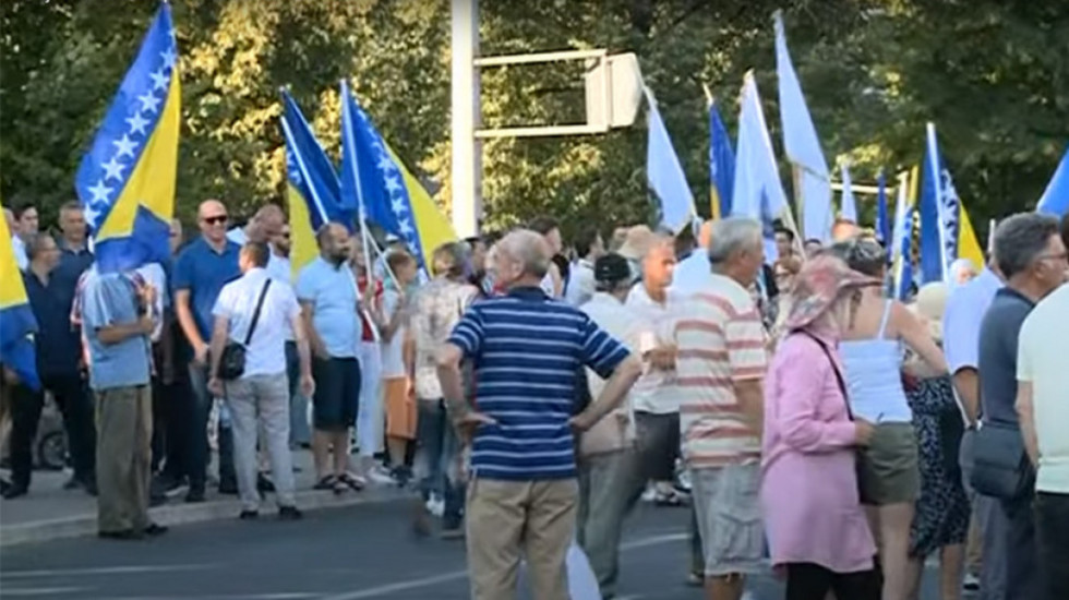 Region I danas protest bošnjačkih stranaka ispred OHR, traže da se Šmit obrati Protest na kojem je prema policijskim procenama sinoć bilo oko 7.000 građana, organizovale su stranke. 26/07/2022 11:35 https://www.euronews.rs/evropa/region/56932/i-danas-protest-bosnjackih-stranaka-ispred-ohr-traze-da-se-smit-obrati/vest pročitaj celu vest
