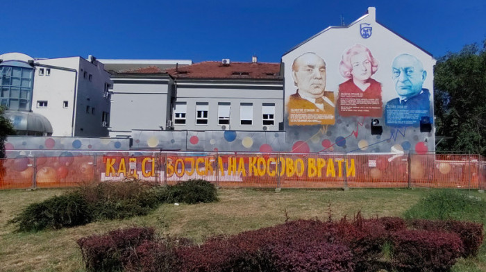 Društvo Grafit o Kosovu nacrtan preko dela murala posvećenog poznatim naučnicima Grafit "Kad se vojska na Kosovo vrati" ispisan je ćiriličnim žutim slovima, a ispod tog natpisa se nalazi naslikana srpska zastava. 28/07/2023 15:46 https://www.euronews.rs/srbija/drustvo/94870/grafit-o-kosovu-nacrtan-preko-dela-murala-posvecenog-poznatim-naucnicima/vest pročitaj celu vest