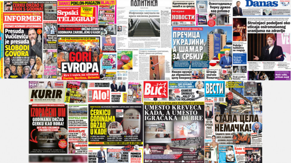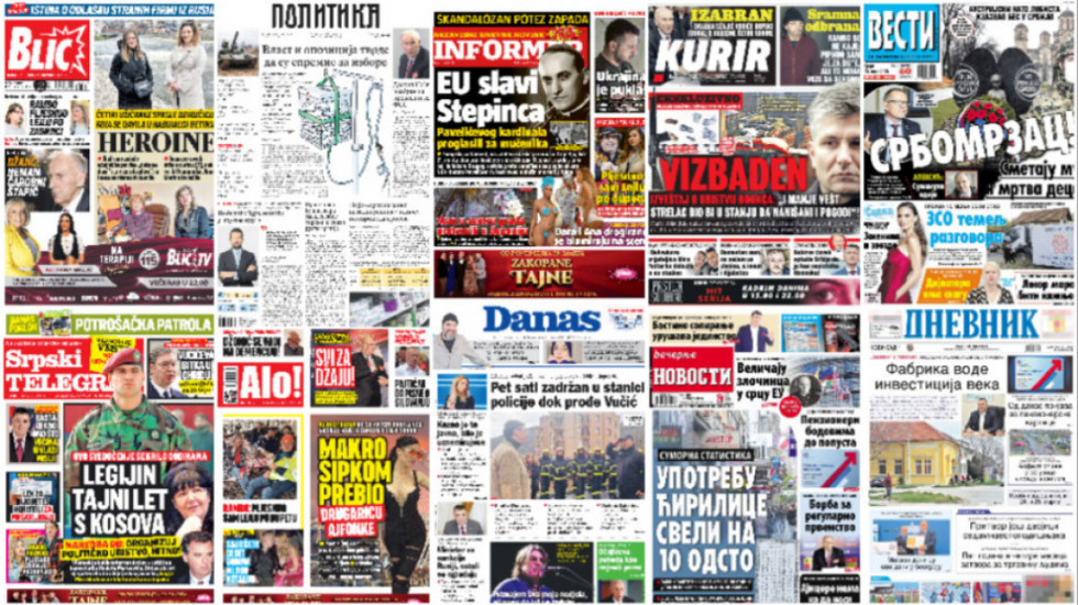 Politika Naslovne strane dnevne štampe za četvrtak, 27. novembar Pogledajte šta na naslovnim stranama donose dnevne novine u Srbiji u izdanju za četvrtak, 27. novembar 26/11/2025 20:17 https://www.euronews.rs/srbija/politika/198551/naslovne-strane-dnevne-stampe-za-cetvrtak-27-novembar/vest pročitaj celu vest